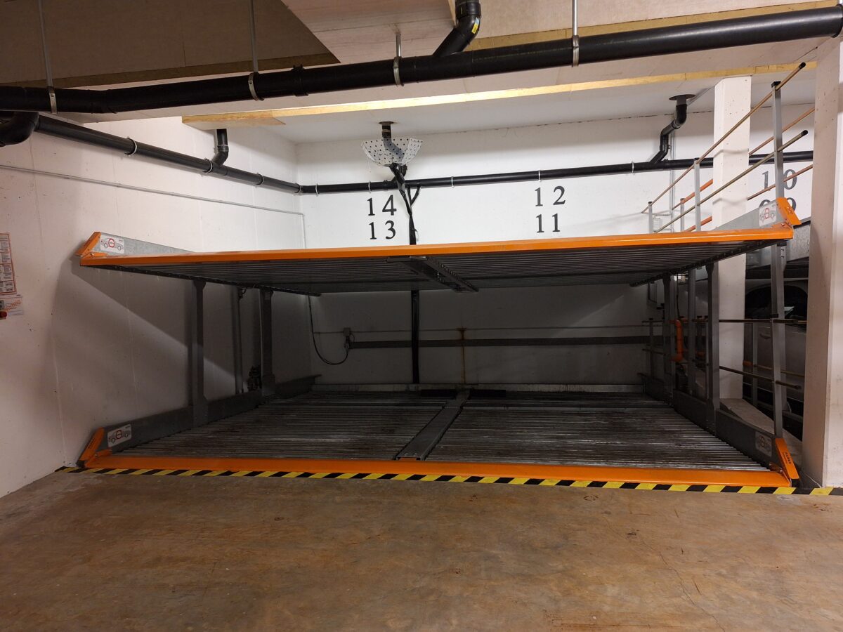 Ab dem 02.04.2026 zu vermieten ist ein Tiefgaragen-Stellplatz: Doppelparker unten, in Darmstadt unter dem Haus Roßdörfer Str. 2 in 64287 Darmstadt.